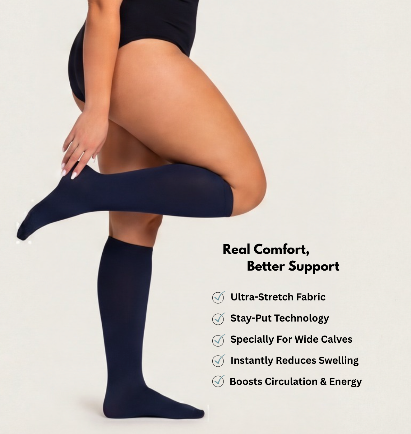 "Finally, a company that understands plus-size needs. The extra width makes them easy to put on, yet they provide the perfect amount of pressure."