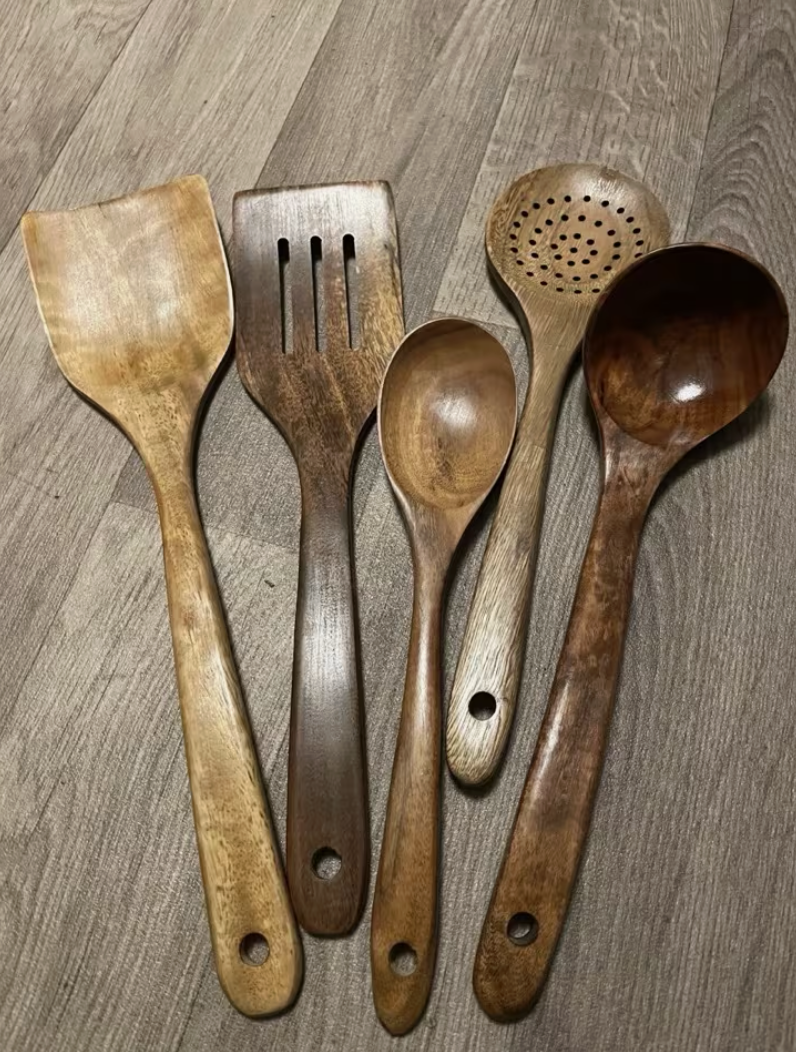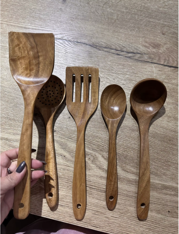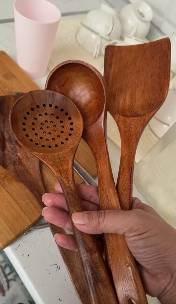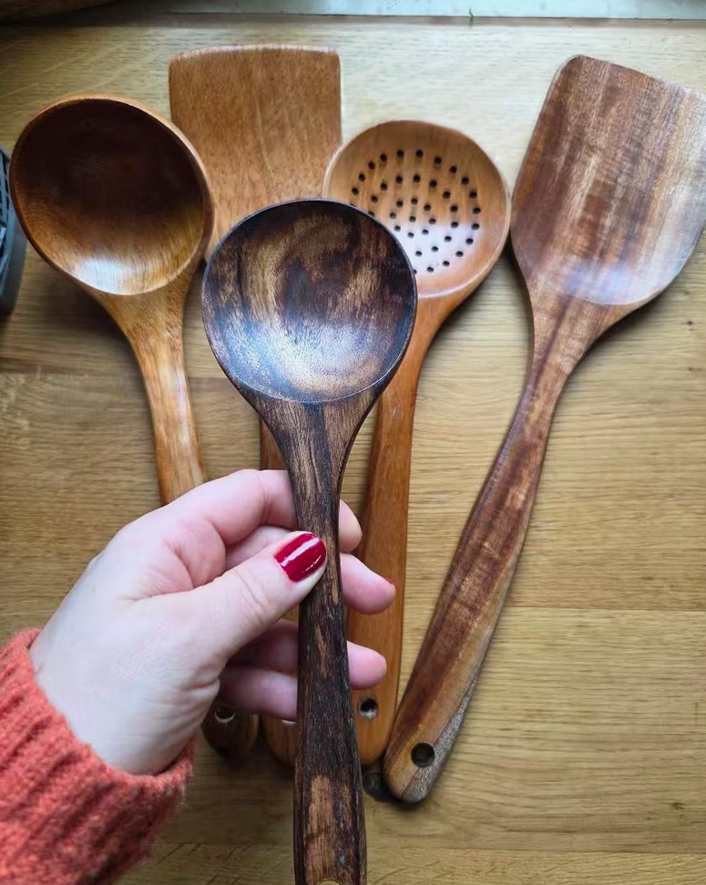 Viele Plastik- oder Silikonutensilien sondern bei hoher Hitze Mikroplastik und BPA ab. PureKüche™ besteht aus 100% natürlichem Teakholz. Es ist vollkommen ungiftig, lebensmittelecht und gibt selbst bei extremen Temperaturen keine Schadstoffe an dein Essen ab.