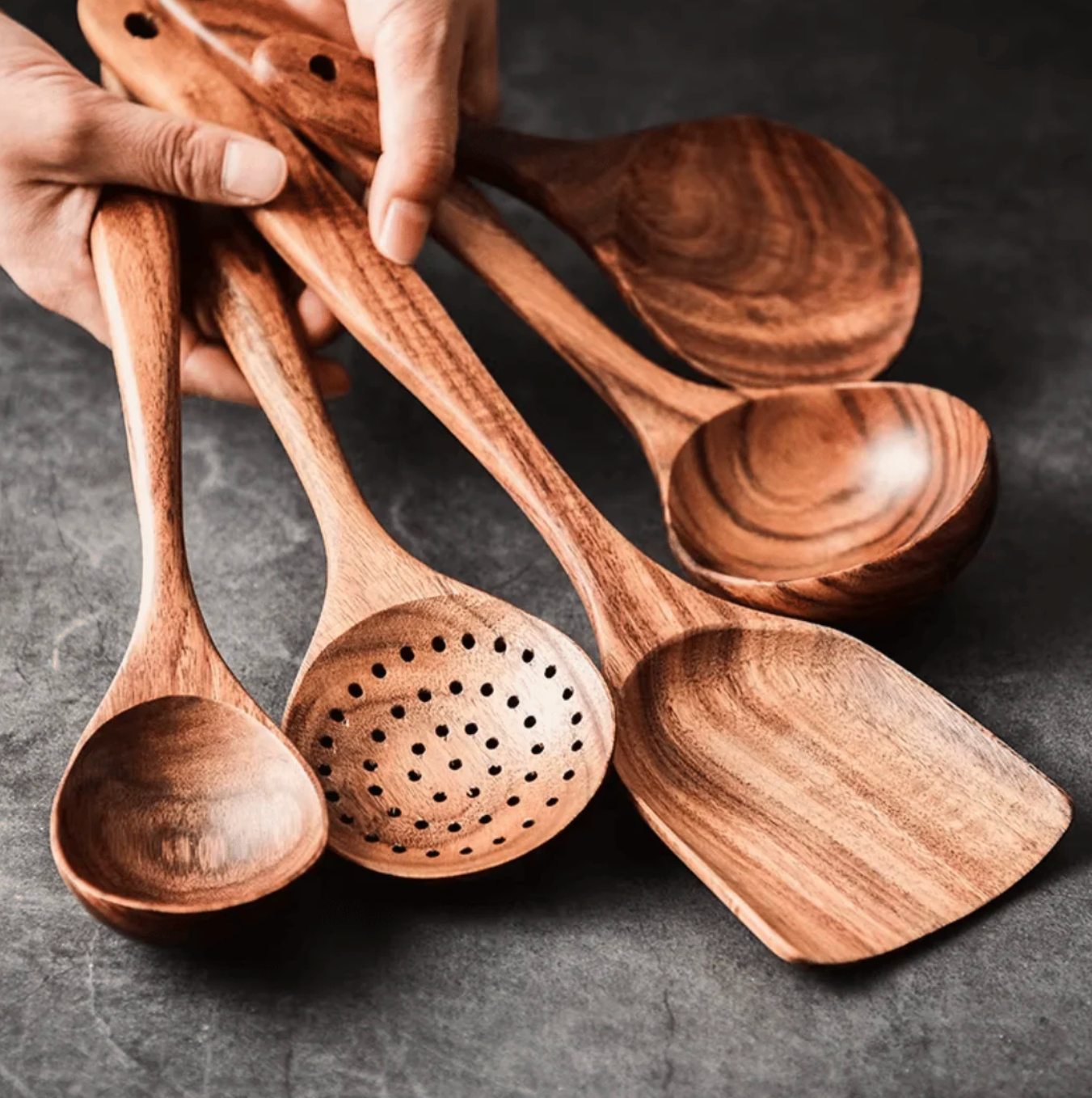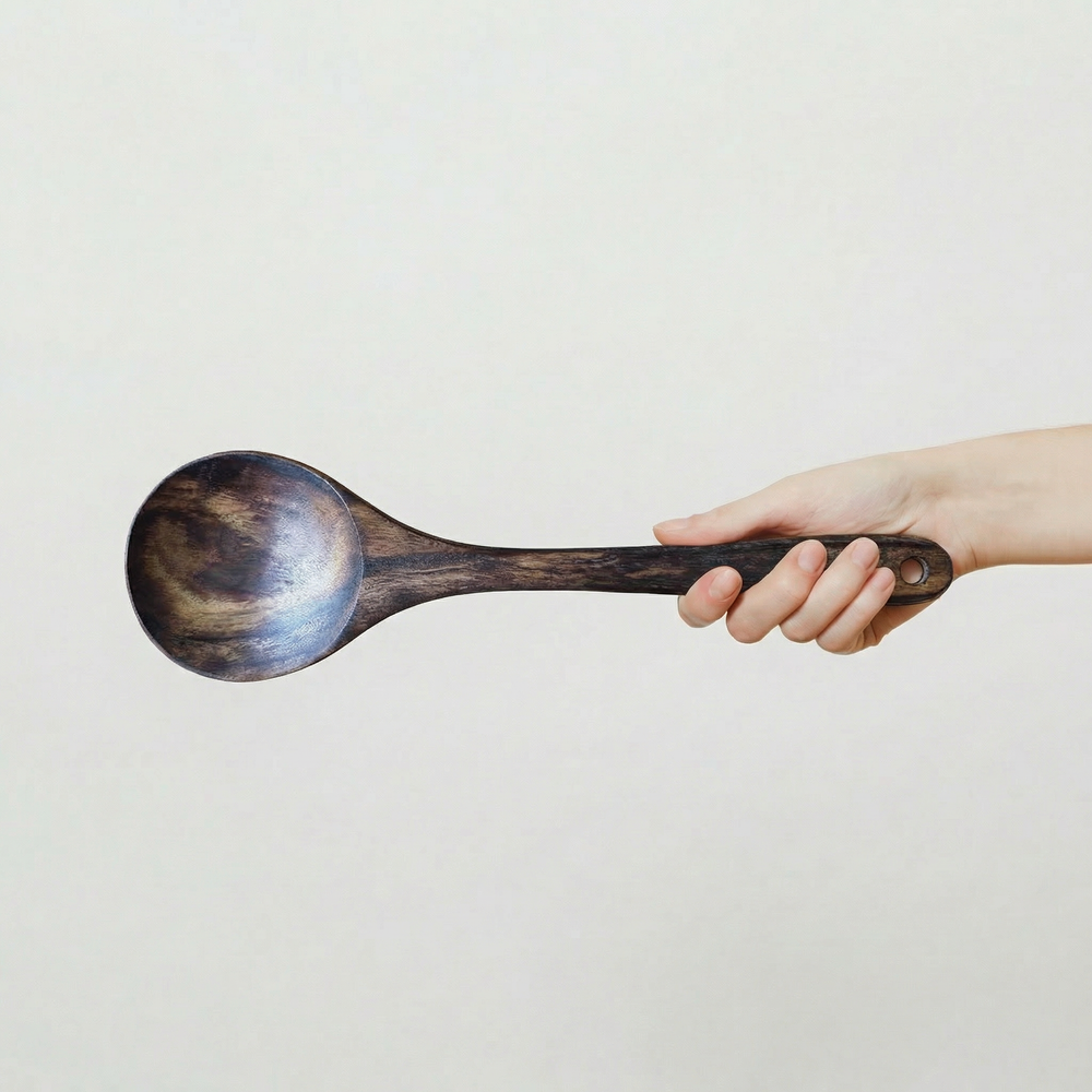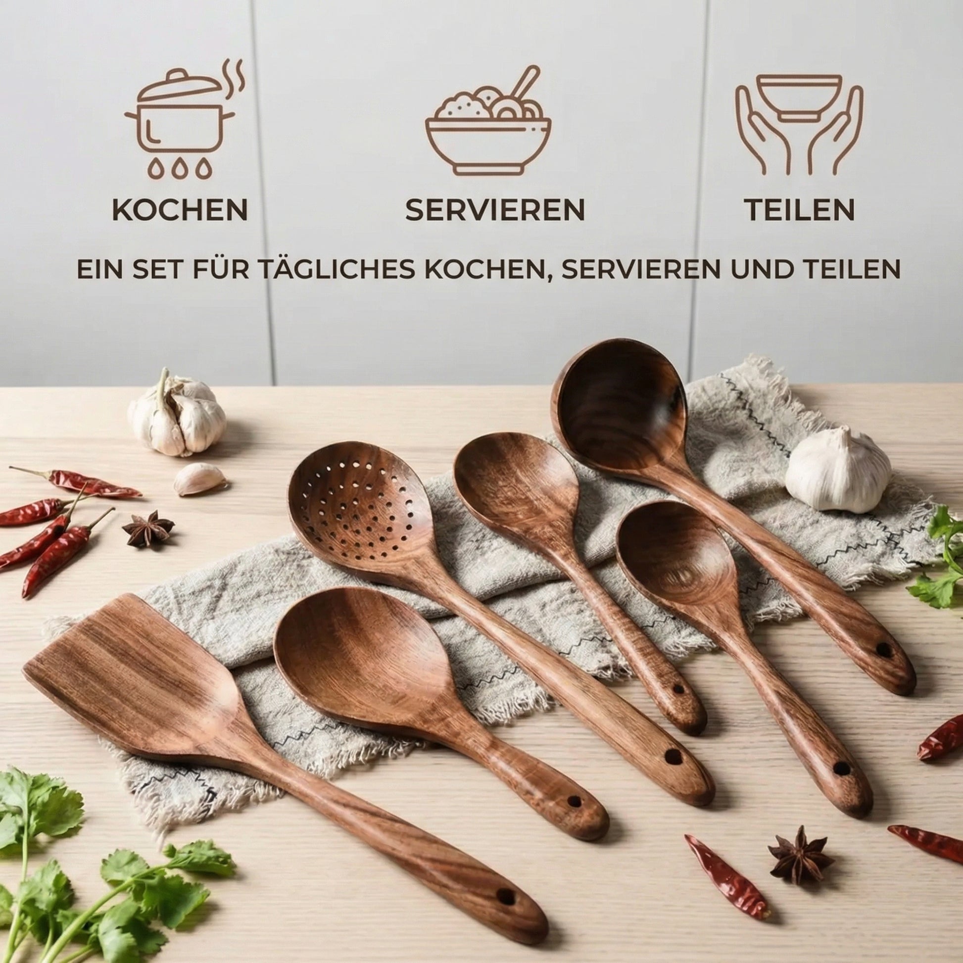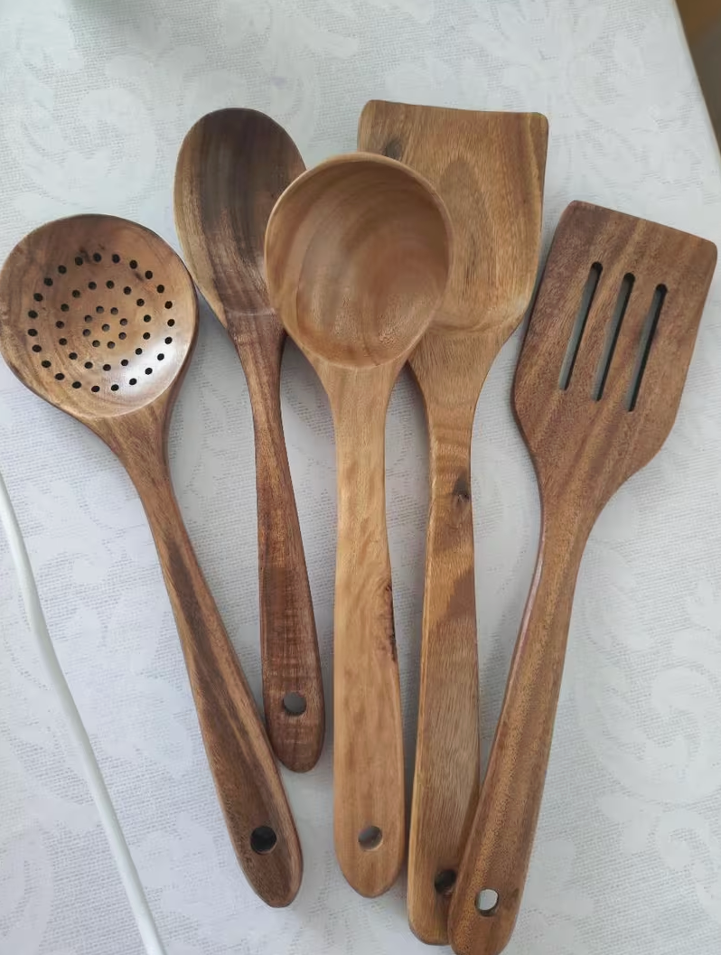 Absolut nicht. Das ist einer der größten Vorteile von Teakholz: Es ist fest und robust, aber sanft genug, um Keramik-, Teflon- oder Gusseisenbeschichtungen niemals zu zerkratzen. Deine Pfannen bleiben wie neu.